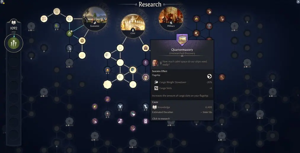 برخلاف Anno 1800 که با افزایش جمعیت محتوا باز می‌شد، در Anno 117 یک درخت اکتشافات عظیم معرفی شده است. این سیستم سه مسیر دارد: