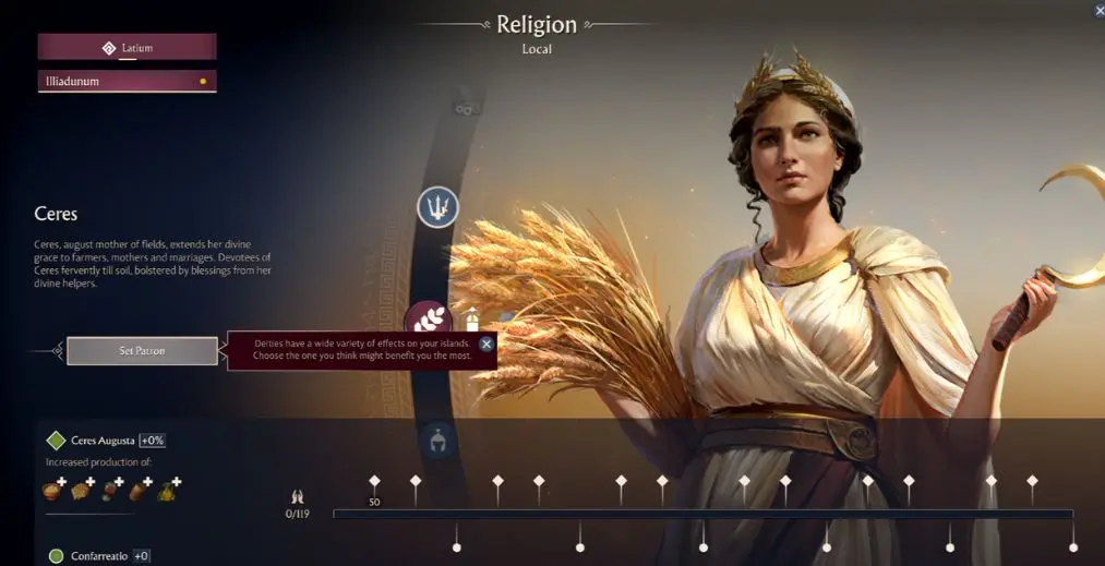 هر جزیره یک خدای خاص را انتخاب می‌کند و بسته به انتخاب، باف‌های متفاوتی به آن جزیره داده می‌شود.