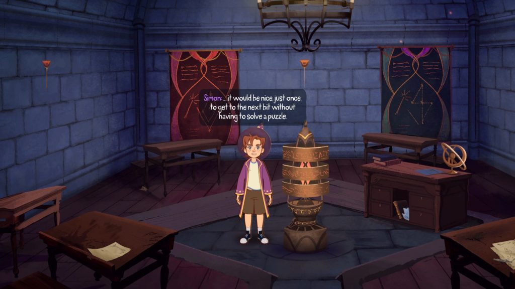 پس از آموزش اولیه، سایمون وارد دنیای جادویی می‌شود و باید با جست‌وجو، گفتگو با شخصیت‌ها و حل پازل‌ها به اهدافش برسد. بازی در بسیاری از مواقع با شوخی‌های خودآگاه، شکستن دیوار چهارم و ارجاعات بامزه به آثار معروفی چون Game of Thrones و Dungeons & Dragons فضای طنزآمیزی ایجاد می‌کند.